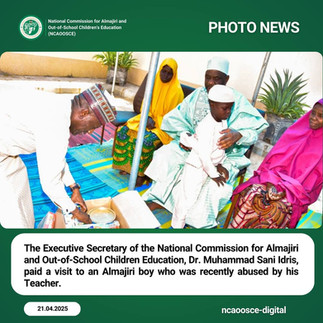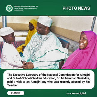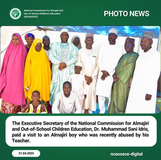 The Executive Secretary of the National Commission for Almajiri and Out-of-School Children Education, Dr. Muhammad Sani Idris, paid a visit to an Almajiri boy who was recently abused by his Teacher.